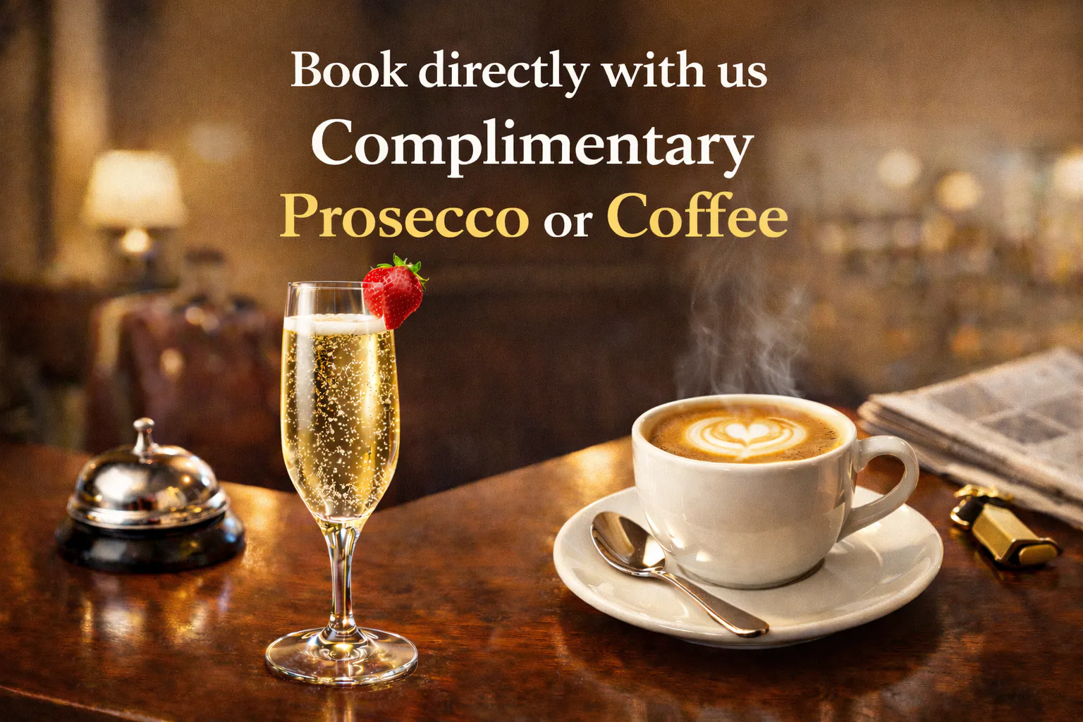 Book directly with us and enjoy one complimentary glass of prosecco or freshly brewed coffee per booking anytime during the day - a small gesture from us to end your stay on a high note.